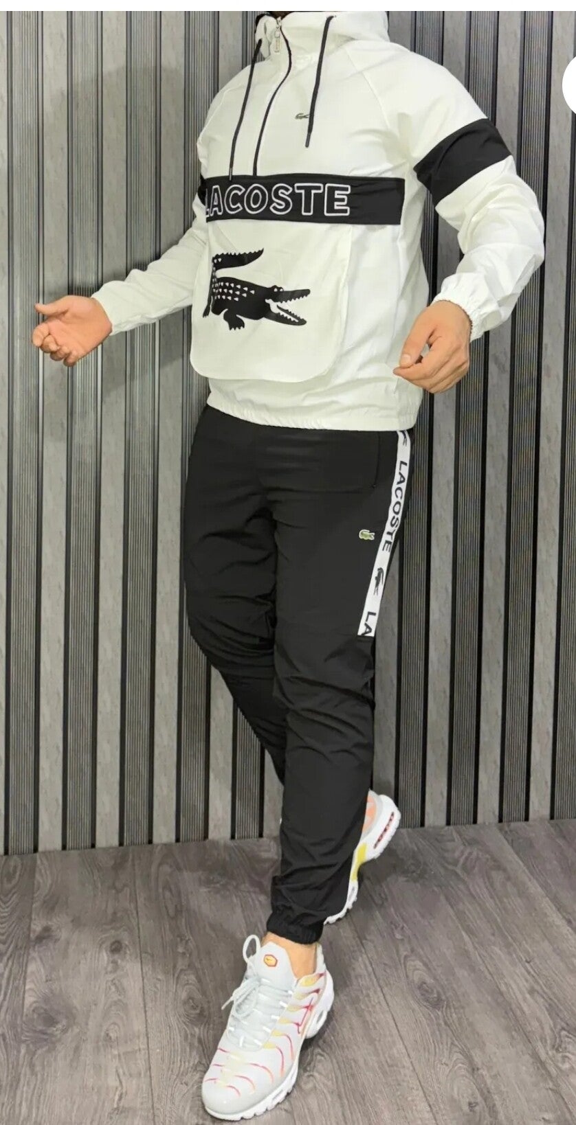 Chándal Lacoste con bolsillos delantero, todo bordado muy buena calidad.