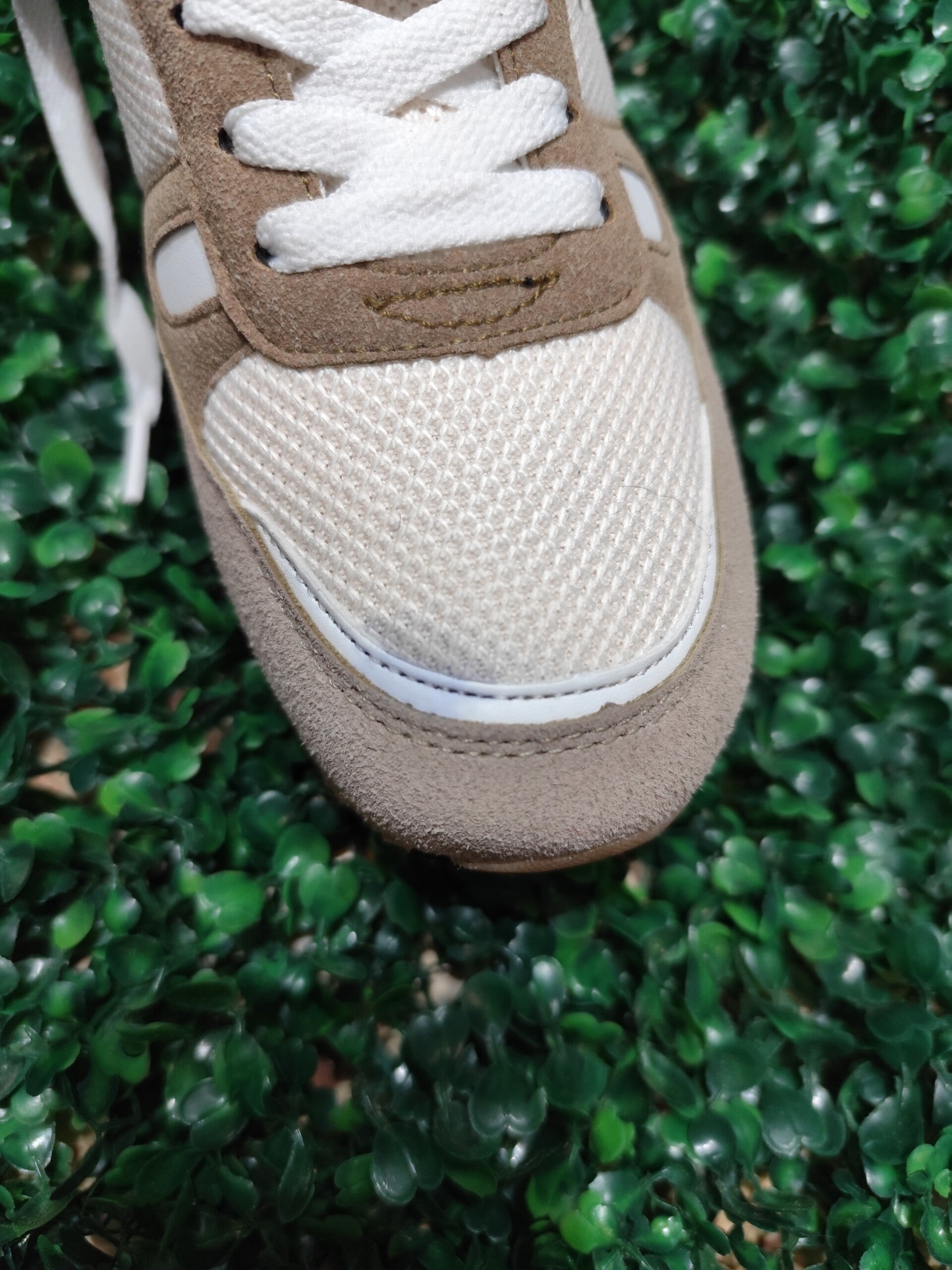Tiene una pequeña mancha en la puntera de la zapatilla izquierda, como se puede apreciar en las fotos,de ahí su precio.